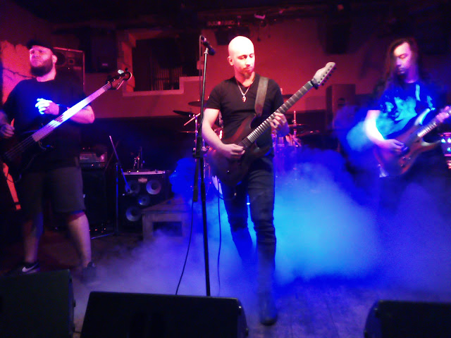 Do klubu Baronka v Litoměřicích vcházíme v době, kdy už hraje kapela PANYCHIDA, kterou jsem také relativně nedávno viděl. Byl jsem upozorněn, že zvuk v tomto klubu není žádná hitparáda. Jenže když jsme tam vešli, to bylo něco tak jinýho, tak hutnýho a živočišnýho, a bylo to brutálně nahlas. Ale fakt brutálně. A neustále se ozývala zpětná vazba hnusným pískáním. Jenže i přes to všechno na mě Baronka, jakýsi sklepní prostor, který se ale nenachází pod zemí, působil tím správným dojmem metalového klubu, kde když se někde něco poblije, nebo rozbije, nebude to nikdo řešit. A taky že se vylejvalo a rozbíjelo. Hned v úvodu (píšu v úvodu, protože jsme stihli 35 minut vystoupení Panychidy, takže hádám, že nám mohlo utéct tak deset minut) se na mol ožralý pupkatý cápek motal tak šikovně, až převrhl pod nohy zpěvákovi na koberec půllitr s pivem. Zatímco zpěvák to okomentoval slovy, že to je jedno, že je to jen pivo, kytarista se strachoval toho, že to bude stříkat a budou od toho pokropeni. Aby toho nebylo málo, nové pivo, které přinesl fanoušek a zcela ve shodě s jeho inteligencí ho položil zpěvákovi na zem přímo ke stojanu s mikrofonem, si asi po půl minutě vylil sám zpěvák stojanem. Ten nenávistně beznadějný pohled kytaristův který se strachoval o sucho jeho nohavic, na ten nikdy nezapomenu... Panychida zakončila svoji produkci cover verzí, jako vždycky to byla soutěžní cover verze, kdo pozná o jakou kapelu se jedná a přijde za nimi jako první, vyhrává panáka s kapelou. Docela by mě zajímalo, jestli za nimi někdo někdy přišel. Upřímně tu napíšu, že Panychida, ač se mi jejich muzika živě libí, nebyla tou hlavní metou, která pomohla vyřešit naše dilema, zda-li jet nebo nejet podívat se na tuhle akci.