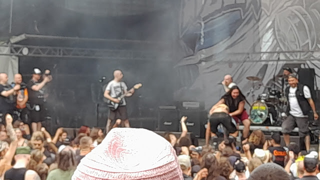 Začíná pršet a já si dávám takzvaný Graperol za 115Kč. Není to nic jiného než panák Aperolu, grepový sirup, nadrcený led, vše zalité perlivou vodou a na vrch kousek citronu a máty. A k tomu jsem si vzal brčko. Papírový. TY VOLE jak někdo mohl vymyslet papírový brčko. Na to musel přijít snad dement. Přece každý malý dítě ví, že tekutina a papír k sobě dohromady nejdou. To vždycky vymysleji nějakou píčovinu, protože zelený ekošílenci věčně něco řešeji. JE MI Z VÁS NA BLITÍ! Zjišťujeme, že Amorfis je opilý jak carský důstojník. Přesedlal totiž z Ratara na pivovar Proud a notně si to užíval. Při prvních kapkách deště zbystřili všichni crusteři. Jako by na to čekali až začne pršet, začali se válet po zemi, sjíždět kopec po prdelích a prostě si užívali, že se můžou zasrat bahnem od dredů k teniskám. A přitom ty crusterky jsou tak hezký, potetovaný holky... ONSLOUGHT, kapela, která je 40 let na scéně předváděla příjemný heavy metal. Bohužel pro ně, začalo celkem slušně pršet a Amorfis začal být celkem slušně na šrot. Následní LIK hráli deathmetal prošpikovaný mejdnovskými sóly. Proč ne? Znělo to kurevsky dobře. Když spustili MEMORIAM, spustil se liják a i na malou vichřici trvající asi dvacet vteřin došlo. Amorfis je K.O. a odešel na chatu. Kam až došel ale v tu chvíli nevíme... SKITSYSTEM je dobrý ale nožičky začaly bolet a tak jdu ulevit do pivního stanu. INFEST mi přišel takovej nijakej, ale spíš to bylo zapřičiněno prudou z deště. Někteří tedy oželují zbývající program a odchází za některými na hotel. Jediný Medvěd si ještě počkal na Malevolent Creation, neboť jak by řekl Já je mám rád. Všude jsou kaluže, pomlácení promočení špinaví ožralí člověci...