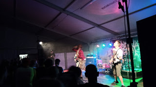 Ráno musíme budit tvrdě spícího Magiho, protože máme namířeno za paní SODíkovou, která nám připravila pohoštění hodné králů a taky bylo potřeba oloupat ze zapařených vajec a řití kaštany, což se lépe dělá za pomoci vody a sprchového gelu. Po výborné snídani a vynikajícím obědě se navracíme do festivalového dění až na druhou kapelu. Já, protože máme v plánu v noci jet domů, již bez piva. Chtěl jsem ochutnat cider, ale nebyl. Prej teprve narazeji. Dávám tedy ne moc dobrou žlutou limču. Cítil jsem z ní víc chemie než jindy. Kapela SWEPT INTO DECAY hrála pomalý death metal a tak nějak jsme ji brali spíš jako doprovodnou kulisu k ještě hnusnějšímu vedru než bylo předešlý den. Ale následný CENSORSHIT už se ignorovat nedal, protože se jednalo o ulítlý rap hardcore, který mi chvílemi připomínal Rage Against The Machine v jejich nejlepších letech. Kapela měla ve svých řadách zpívajícího DJ. Hlavní zpěvák, pokud se snažil zpívat, což bylo asi jen jednou, zněl dost falešně. Naštěstí povětšinou rapoval a řval a to mu šlo dobře. Pobavila mě situace, kdy kapela pořadatelům z kapely Anime Torment věnovala písničku s názvem "Čůráctví". To prostě potěší... Jelikož tady na blogu zásadně politiku neřeším, nějaká politická debata proběhla tam. Konkrétně jsme se bavili o zneužívání sociálních dávek cigoši, jak říkáme my, nepřizpůsobivými, jak říkají umírnění, neboli potřebnými, jak říkají levičáci. Už nevím kdo to byl, ale zmínil, že do této situace se může dostat každý, že bude odkázaný na pomoc státu, což je samozřejmě pravda. Ovšem reakce jiného diskutujícího mě rozsekala. Na větu, že berou plno různejch dávek a že to se může stát každému, bylo odpovědí, to jakože zčernají? Hahahaaaaaaaaaa No fuj! Kam jsem se to dostal? Takový rasismus nebyl ani v nejobávanější kapele z nejodpornější všech dob, která kdy po zeměkouli chodila, ORLÍKu. Ohavné! WHEN PLAGUES COLLIDE byla kapela, ze které jsem musel utéct, neboť měli strašně přepálený zvuk, který se neslučoval s muzikou, kterou hráli, což byl jakýsi symphonic screamo brutal death? Škoda. No aspoň jsme se dočkali toho cidera. Nevím proč jim naražení jednoho sudu trvalo tři hodiny, ale budiž. Ono celkově to tam, co se týká obsluhy a zásob nápojů bylo letos hodně špatný. Vedro je úmorné, limoška hnusná, zkouším tedy toho cidera, který je naopak zase teplý. Obsluha za bary je tragická, pomalá, chaotická, s cenami neobeznámena. To není dobrý tohleto. Od téhle chvíle začíná všechno docházet. Jako první došel cider. Doprdele to tam měli jeden malej sud nebo co kurva? Netrvalo snad ani hodinu a už nebyl. Pak začaly docházet limonády jedna po druhé. Pak došel led a rozlévanou KokaKolu měli teplou. Pak došel i rozlévaný tonik a džin a prostě všechno uplně v prdeli. Obsluha absolutně neprofesionální. Na ní by si naši inženýři manažeři v práci smlsli. Například jsem si šel pro kávu. Byly tam dvě ženský. Nějaká holka si navymejšlela, že chce do toho led a plivnout a víc vody a já nevim co ještě. Zaměstnala tím dvě obsluhy na několik minut. Já čekám jak trotl, pot mi chčije po zádech do trenek a oni si tam hrajou s kávovarama. Kdyby se jedna otočila, mohl jsem si objednat jednoho turka a ona mohla dát zatím vařit vodu. Ne. Takhle to nebylo. Čekal jsem než se vykokotěji s kapučínem aby se pak kokotily s rychlovarnou konvicí a nakonec dokokotily moji kávu, kdy mi do papírového kelímku daly do půlky kafe a zbytek zalily vodou. Pořádnej lomcovák to byl. Nebo jiný případ. Jdu si pro pivo. Za barem jsou opět dva obsluhující. Nějaký kluci si naporoučeli míchané kořalkovité nápoje. A teď sleduj hele. Jedna obsluha v ledničce hledá nealko na zalití. Druhá obsluha hledá kořalku, nalévá kořalku. Nazvájem se pletou. Jeden hází led do kelímků, jeden to míchá dohromady, oba dva pak kasírují. Zatímco já čekám asi 10 minut, než namíchají a odbaví tři míchané drinky. Za mnou se utvořila fronta dvaceti žíznivých deathcorových hlav. A takhle to tam bylo všude a se vším. Prostě špatná obsluha, špatně naplánované množství nápojů ke konzumaci. Nemám víc co bych k tomu podotkl. Velké zklamání. STREET MACHINE se mi moc nelíbí a těšíme se na STERCORE.