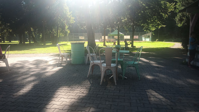 Nevim no, představoval jsem si to větší a chutnější. Asi přestanu starýmu fotrovi věřit ty jeho kladný hodnocení, protože přeci když je něco naprosto průměrné, neřeknu národu, že je to skvělé a velké jenom proto, že se mi líbí servírka. Když jsem tedy dvakrát nasál brčkem, s klukem si rozdělili minidonuty a minizákusky, lžičkou jsme vybrali šlehačku, zůstala sklenice prázdná a byl čas na poslední akci, a tou bylo placení. Nechtěl jsem čekat další třičtvrtěhodinu než se někdo ozve o mé peníze, tak jsem zašel k okénku a zaplatil. Za dva burgry, dvoje hranolky, chedarovou omáčku, jednu sladkou píčovinu, tři nápoje a jeden freakshake mi bylo naúčtováno 1015Kč. Nemyslím si, že by to bylo málo. Navíc to prostředí, nad kterým se starý fotr také rozplýval, nebylo nejlepší (to že sedím venku v přírodě ještě z hospody nedělá africký safari) a pak to čekání, já vám nevím. Není nic, co by mě sem znovu lákalo. Sorry. Ale dětem se tam líbilo takže tam nejspíš ještě někdy vyrazíme....