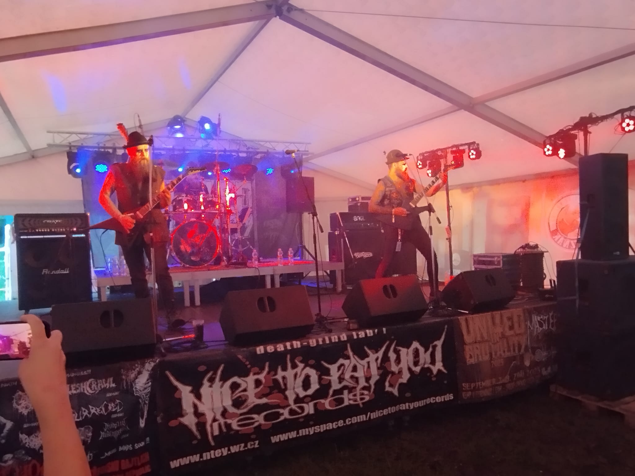 A jdeme do finále prvního dne, o které se postarali pardálové INGROWING. Samozřejmě že svojí hudbou si namazali ostatní kapely na chleba a rozdrtili všechno a všechny, ale tak zase oni hraji poctivý grindcore a všichni víme co je to za hudbu. Tak poctivě ho hráli, že i do kotle jsme se SODíkem zaběhli rozproudit krev v našich stárnoucích tělech. Trochu jsme si zapařili, poposlouchali, kvitovali jak jim to šlape a byl konec. Dobrá práce Ingrovyngu!!